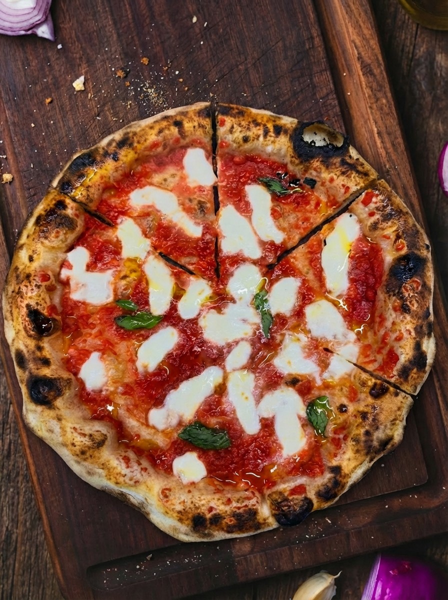 Nos pâtes sont fermentées lentement pour une texture légère. Chaque pizza est cuite dans un four napolitain, pour une cuisson authentique.